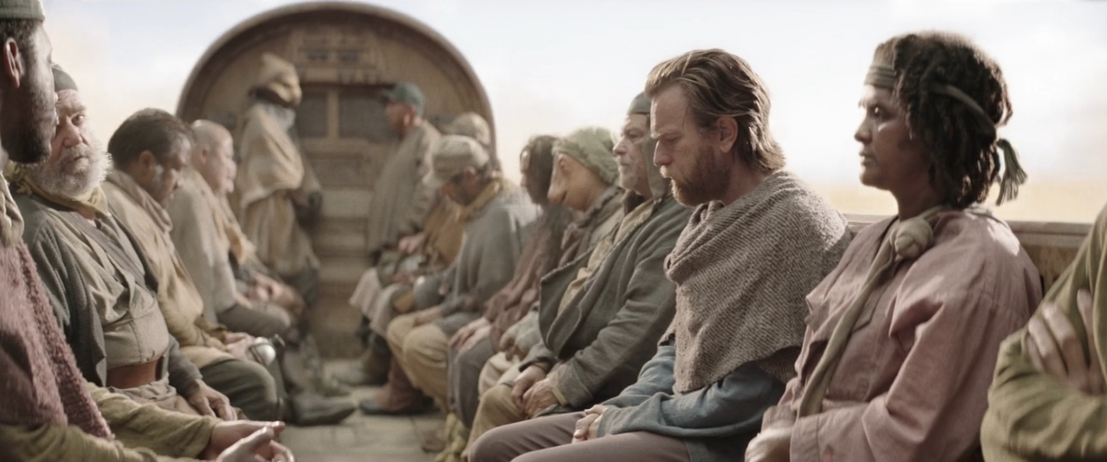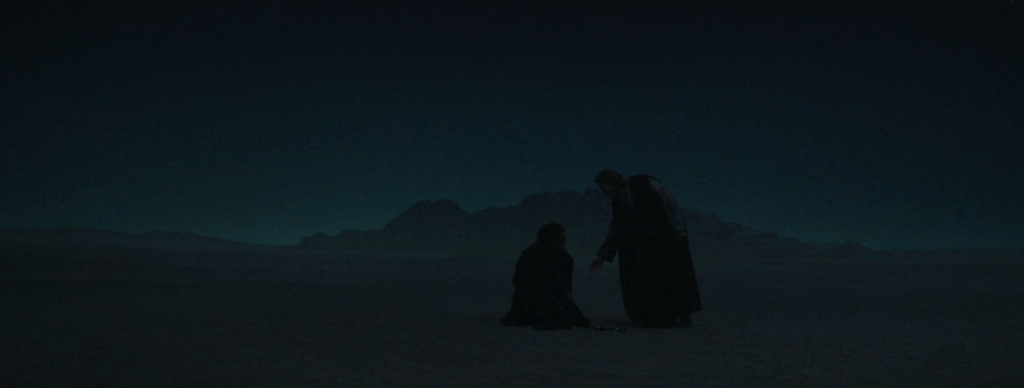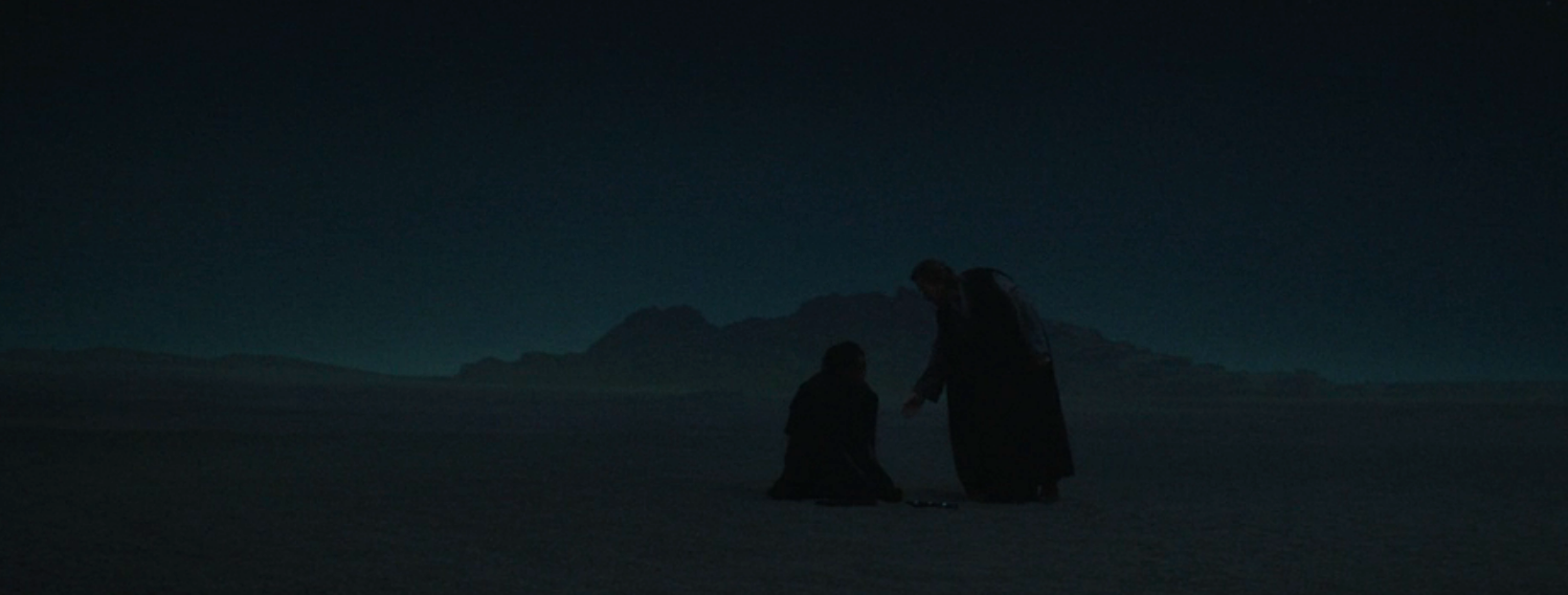 When we meet Ben in Part I, his life is a circle. By day, he works at a meat processing station across the Dune Sea; by night, in dreams, he relives the horror of what happened with Anakin on Mustafar. The way Deborah Chow directs these scenes does a magnificent job of driving home the soul-crushing sameness of life inside the loop. On a plot level, of course, Ben lives this way to protect Luke (and himself) from the Empire. But on a symbolic level, this is simply what unprocessed trauma feels like: Nothing changes. Everything repeats.