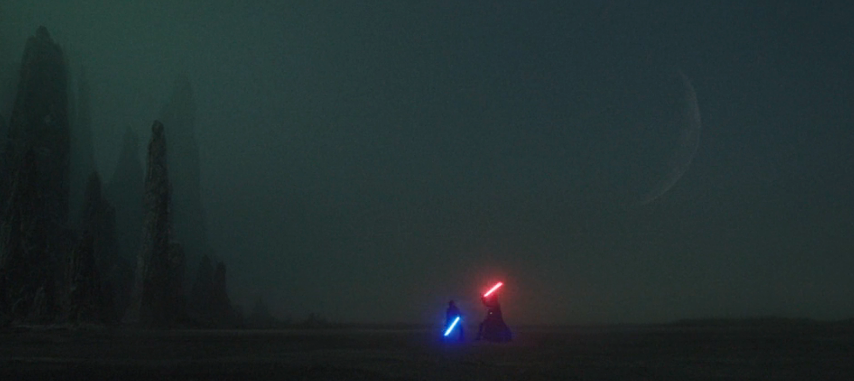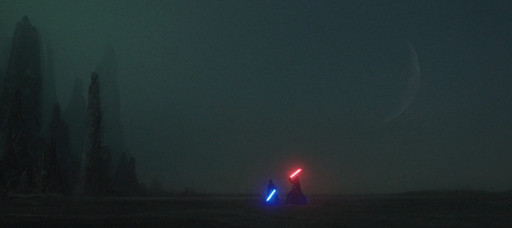 This scene is effectively constructed as a callback to the famous moment in The Empire Strikes Back when Luke enters the dark side cave on Dagobah and “kills” Vader, only to see his own face beneath the helmet. Unlike Luke, Obi-Wan recognizes how he and Vader are alike before dealing a fatal blow. He acknowledges the broken and guilty part of himself he sees mirrored in Anakin’s scarred face, and realizes that if he cannot learn to accept all that has happened—if he sacrifices himself at the altar of changelessness in an effort to avoid further loss, as Anakin has—then Vader’s “living death” might be his fate one day, too.